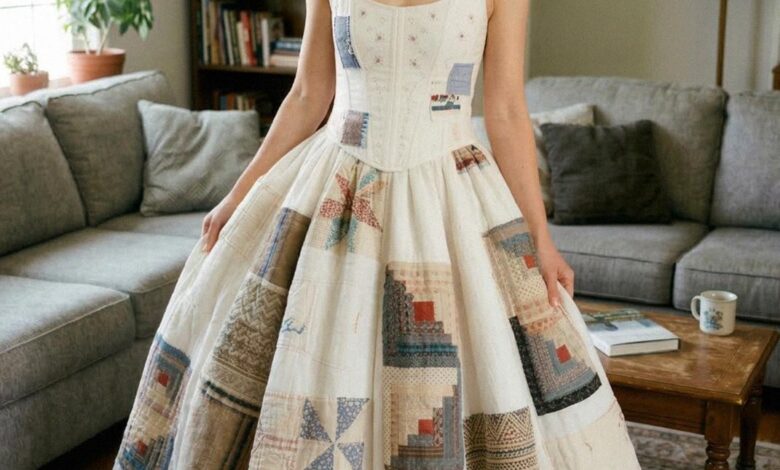 When that mother passed away shortly before her daughter’s wedding, the grief was a suffocating fog. The wedding invitations had been sent, the dress had been chosen, and the celebration was meant to be a crowning moment of shared joy. Instead, the bride was left to navigate the final preparations with a hollow ache in her chest. Seeking a way to carry her mother’s presence with her down the aisle, she made a bold creative choice: she would work with a seamstress to transform that cherished childhood quilt into a voluminous, patchwork bridal skirt. It was an unconventional piece, a striking blend of ivory silk and rustic memory, representing the bits of a life stitched together with love.